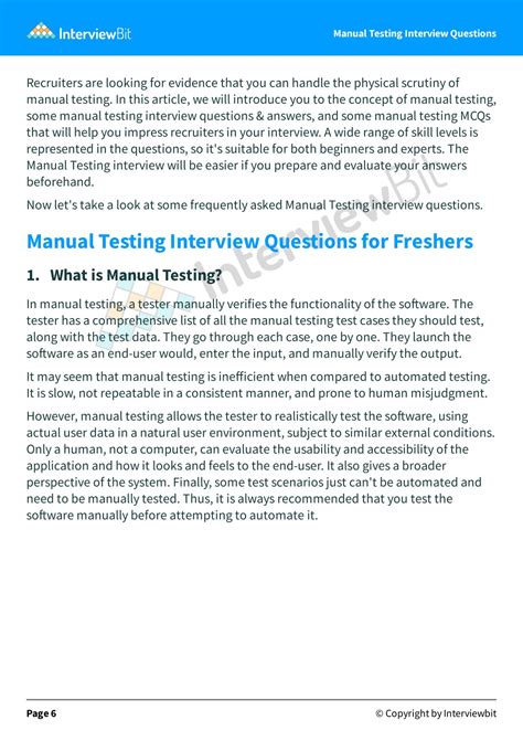Manual Testing Interview Questions And Answers For 5 Years Experience - Questions & Answers. You should prepare to be asked general questions, questions about. It is a standard software testing approach that requires testers to assess the functionality of the software as.